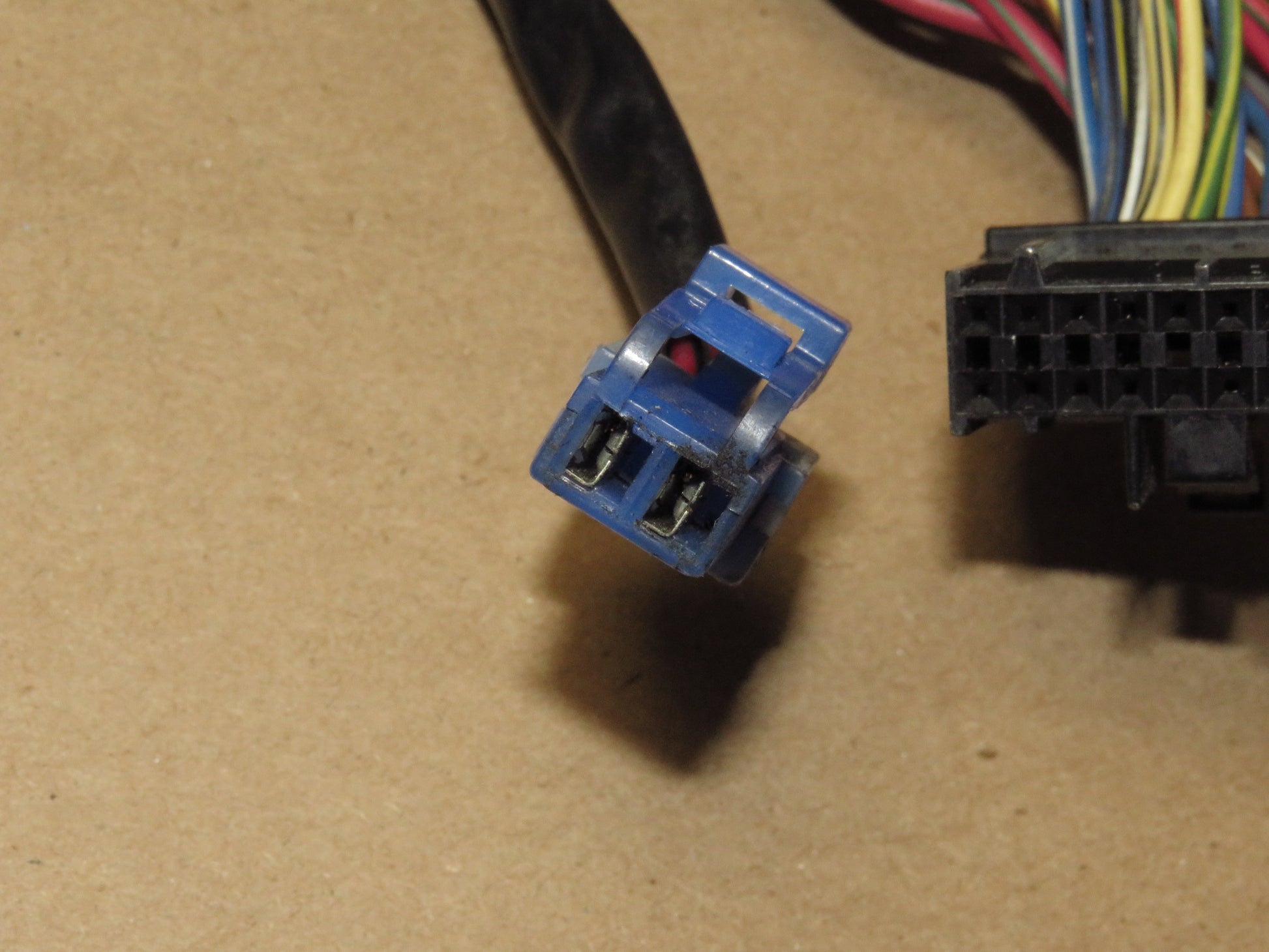 one end plugs to the climate control unit and other plugs to the heater core harness.