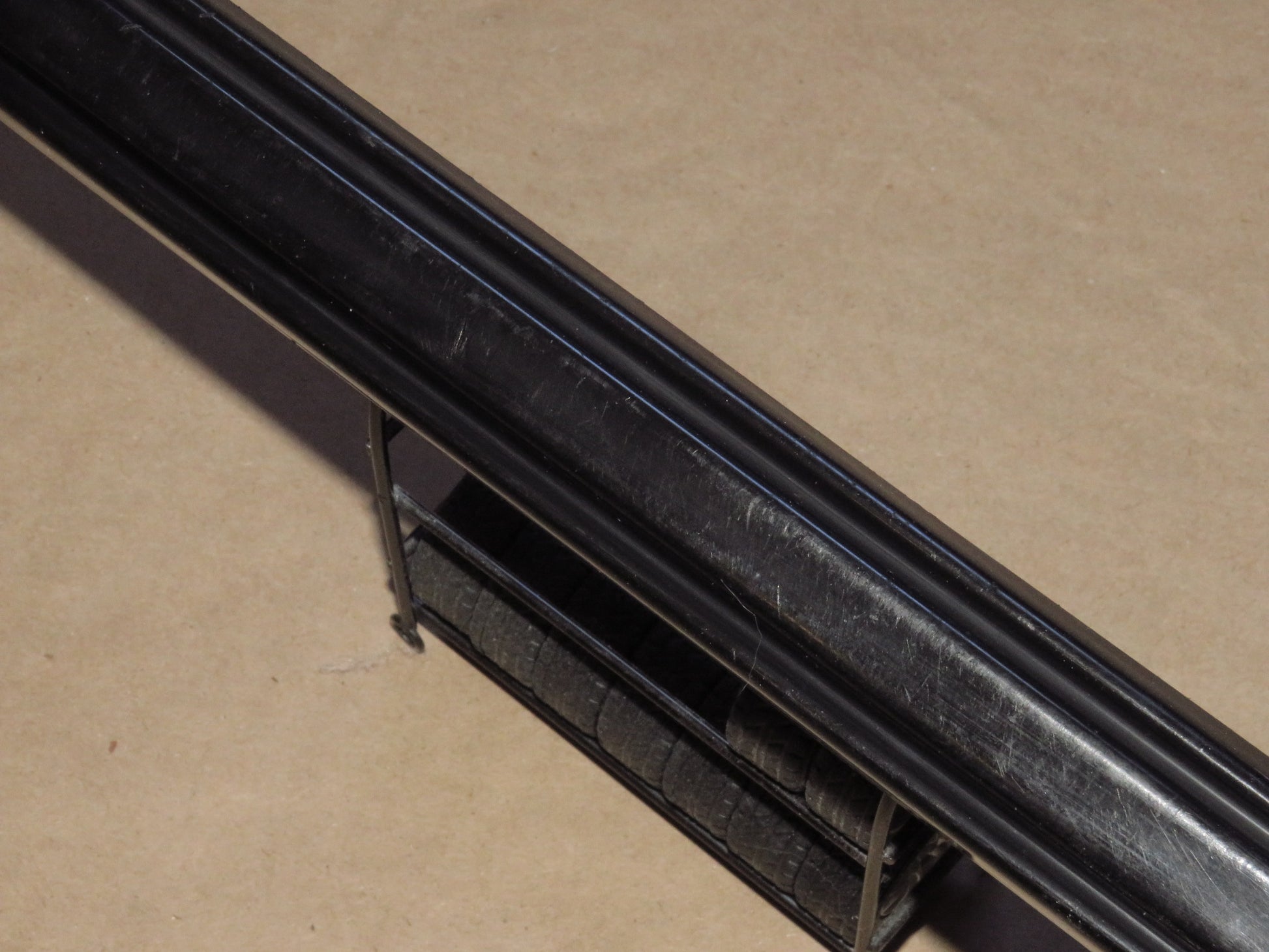 Mount in front of the rear wheel.