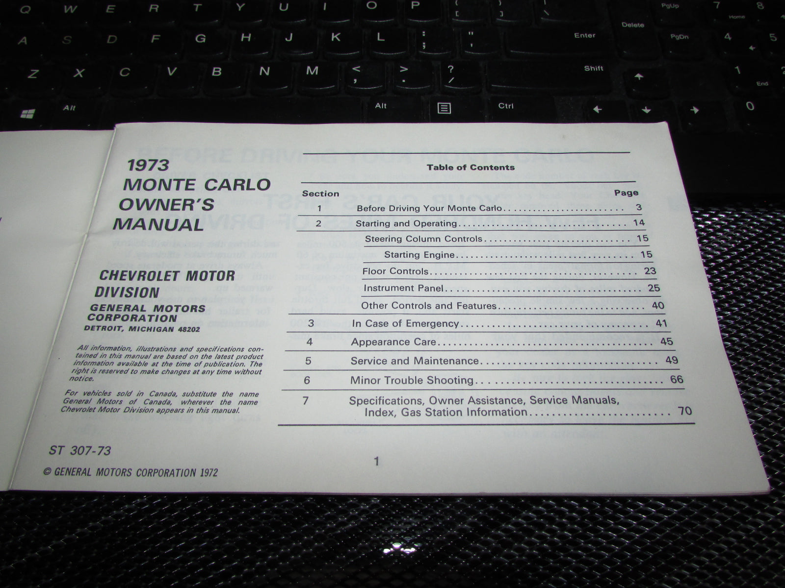 Chevrolet Monte Carlo (1973) Owners Manual